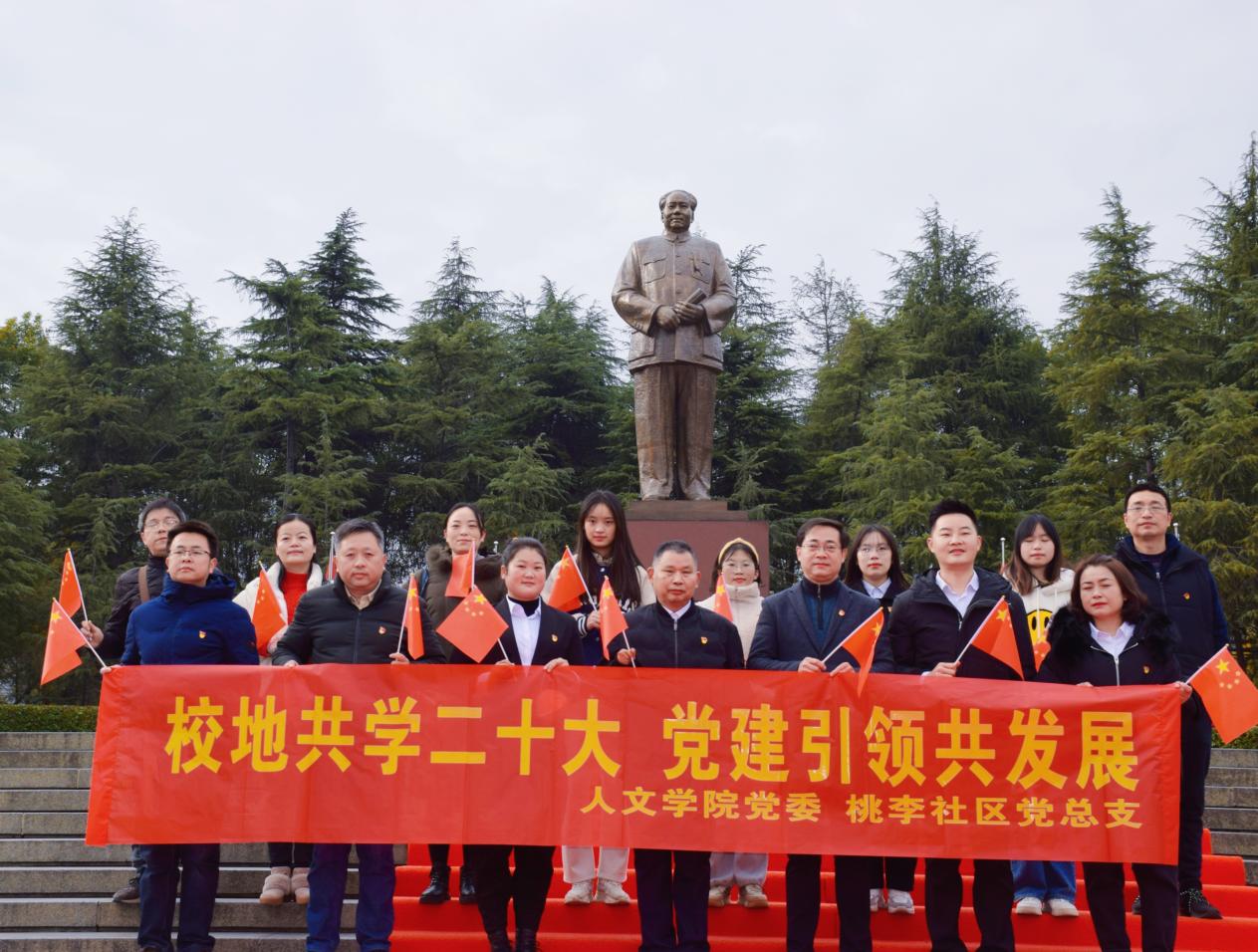 为深入学习贯彻党的二十大精神、促进校地高质量融合发展,12月15日上午,SUNBET申博官方网站人文公司党委书记曾志东、党委副书记邓辉、副院长李康澄、全体学工办老师、部分员工党员及桃李社区党员代表共赴韶山毛主席故居开展了以“校地共学二十大 党建引领共发展”为主题的联学共建活动。