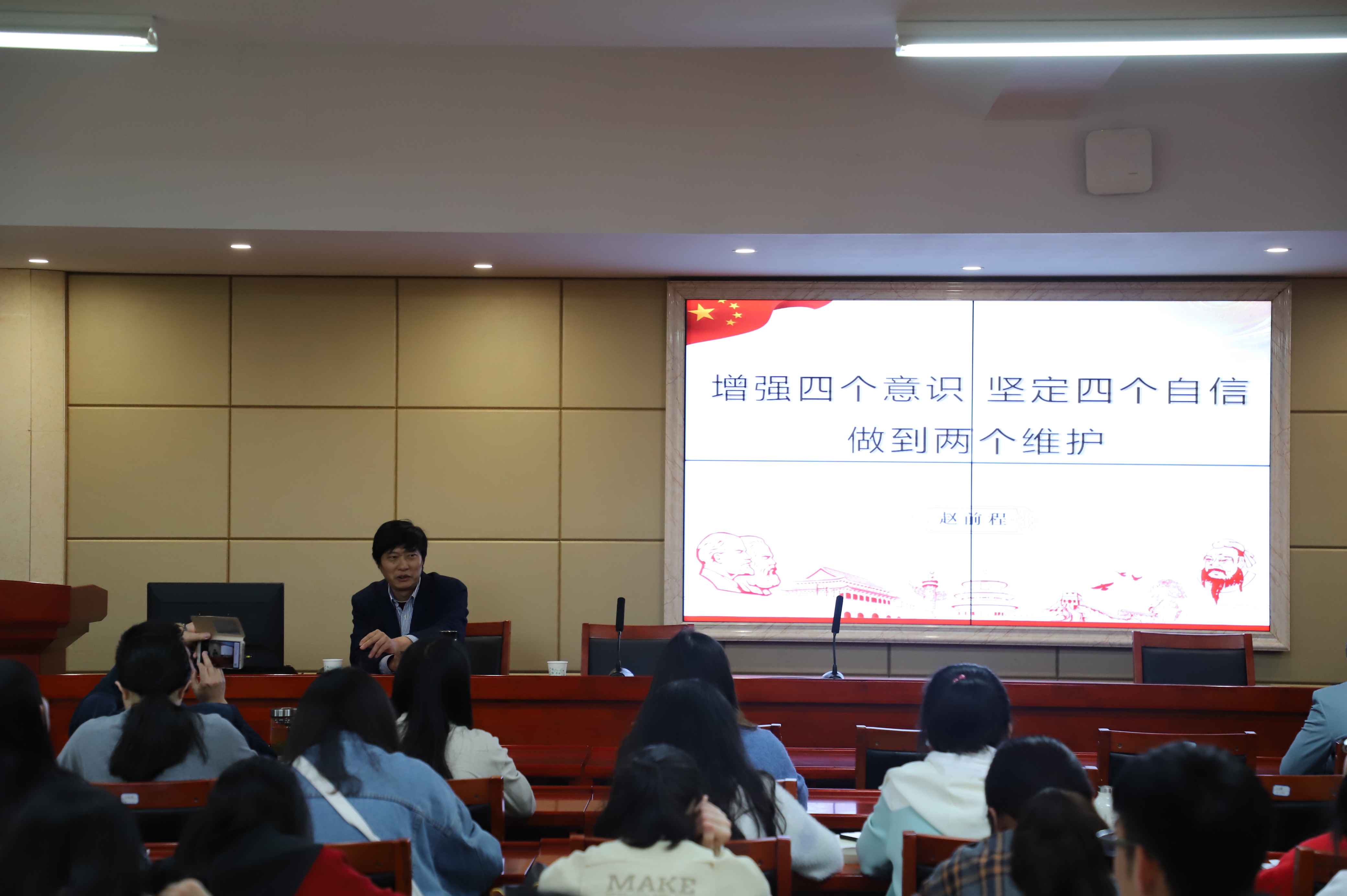 应人文公司党委邀请,公司党委委员、统战部长赵前程教授于4月16日下午在立言楼4-1报告厅为公司教工第五支部的党员老师和员工入党积极分子讲了一堂主题为“增强四个意识、坚定四个自信、做到两个维护”的精彩党课。