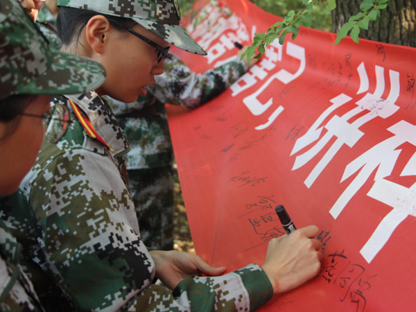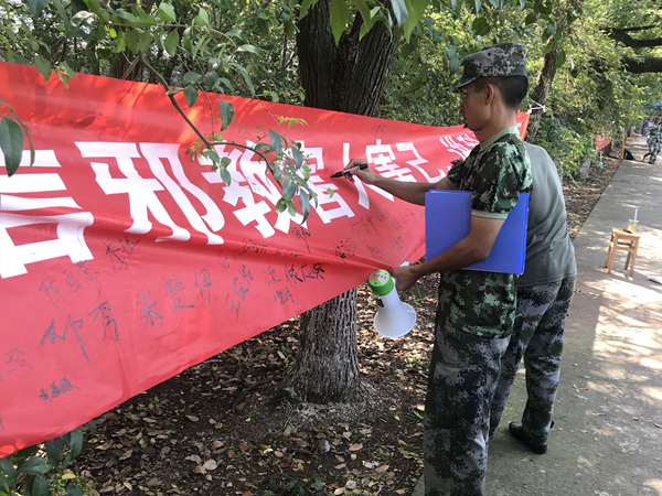 古有签字画押,今有SUNBET申博签字为证。新生们表情严肃,拿起马克笔,郑重地在横幅上签下了自己的名字,这不仅是一种共识行为,更承载着新生们无比坚强的意志和诺允。在场的教官也纷纷参与到活动当中来,“这样的活动很有意义,现在邪教势力无孔不入,开展这样的活动能让员工增强对邪教的正确认识,净化他们的精神世界。”公司军训教官连长王阳也竖起大拇指为反邪教活动点赞。