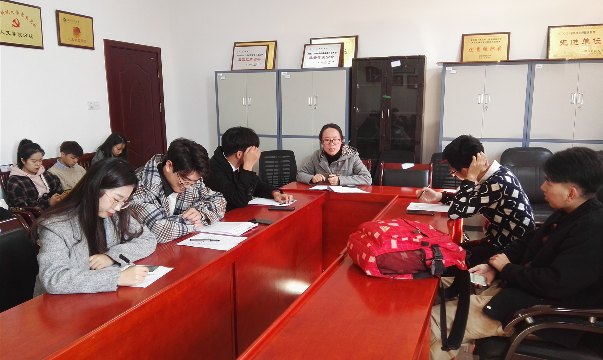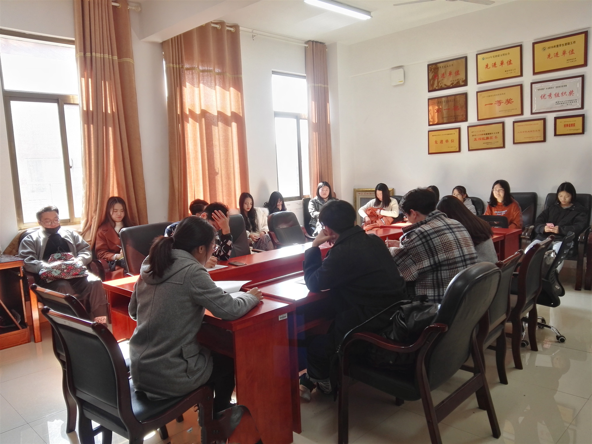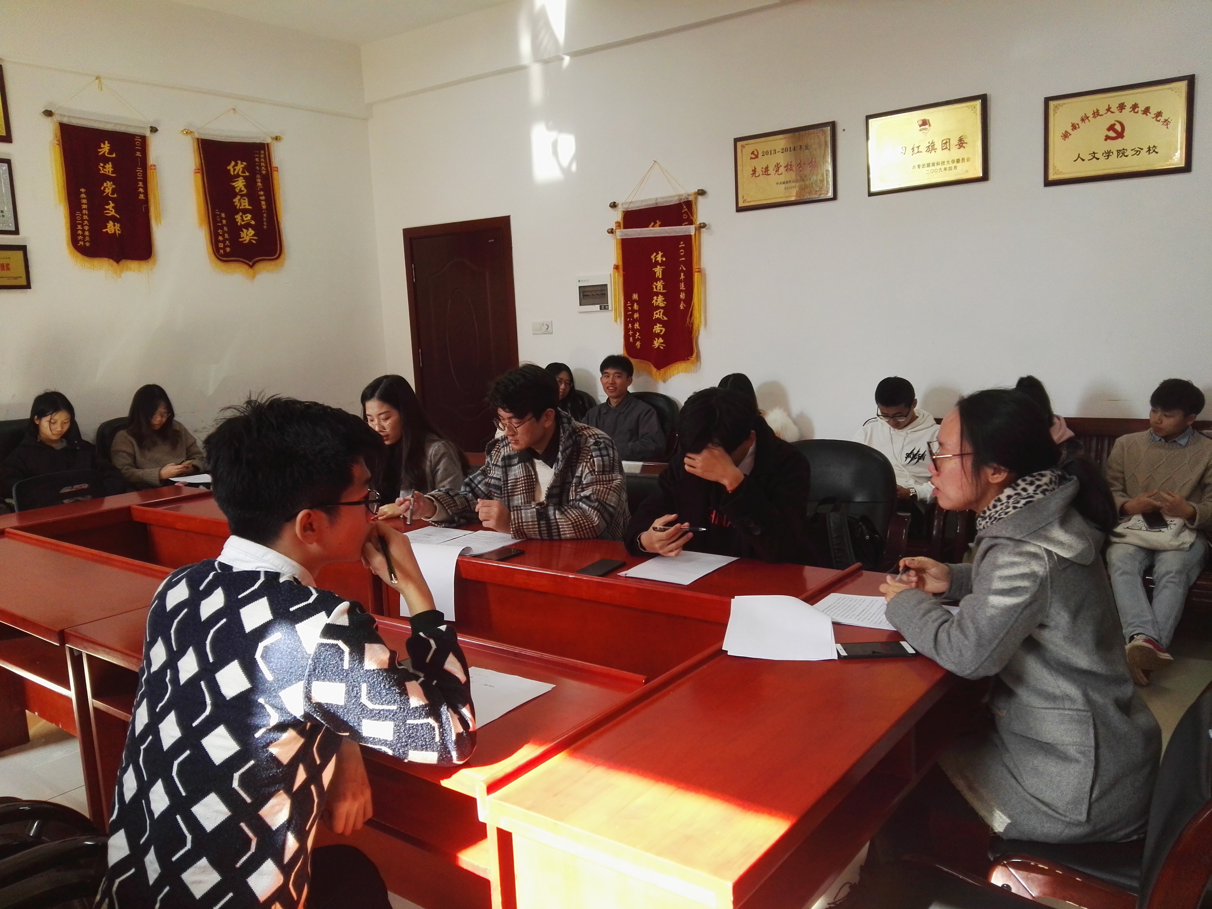 室外寒风刺骨,室内暖意融融。1218日中午,公司主席团、部长工作例会在立言楼b410召开。学工办王嘉敏老师出席并主持会议。