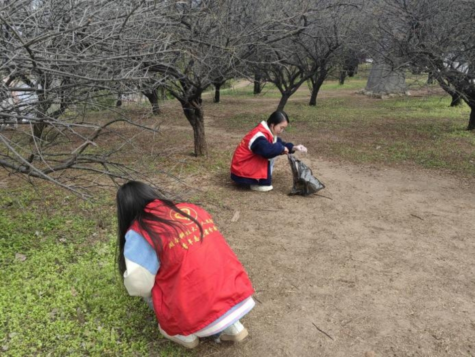 志愿者捡拾梅花园内垃圾