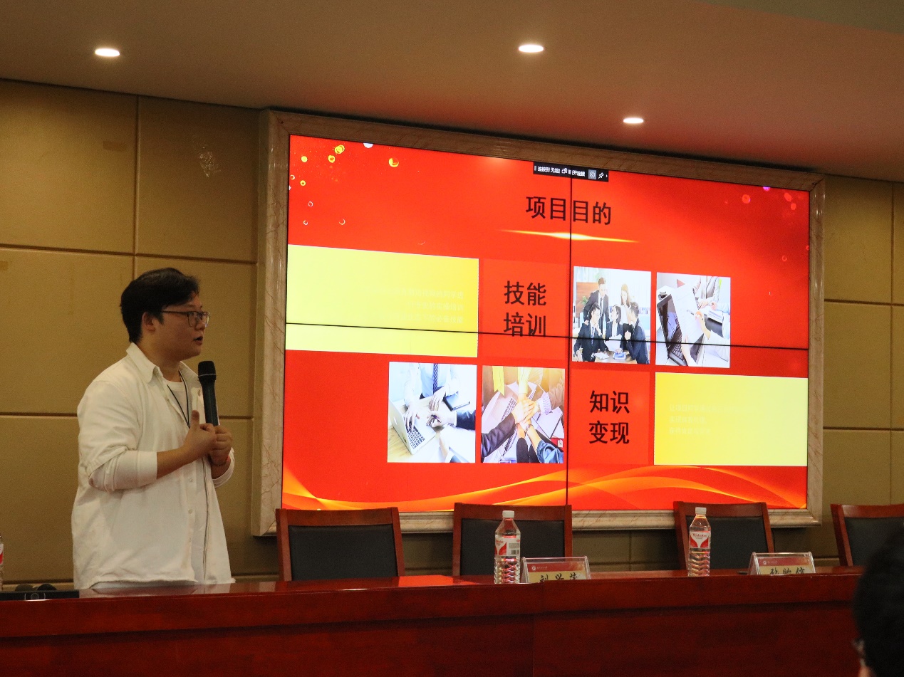 (来点儿传媒有限公司联合创始人兼高级培训师俞宗敏向员工介绍直播带货项目)