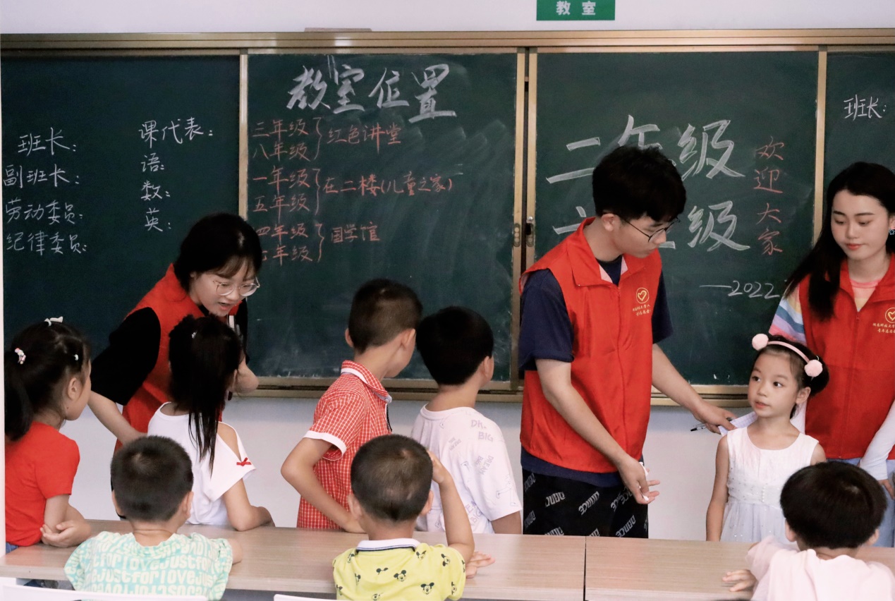 “嘟”一声响亮的哨声穿过各个教室,儿童之家暑期公司拉开了第一课的序幕。夏昭炎教授冒着炎炎烈日前往各个教室考察教学情况,他笑着对志愿者说道;“要把握好教学进度和时间安排,尽量做到把知识讲透、把道理讲通”。