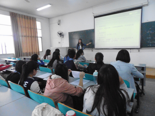 比赛中,选手们个个从容不迫,利用制作精美的PPT与用心写下的板书进行说课与授课,将单调的课文讲解的充满韵味,令同学们耳目一新。