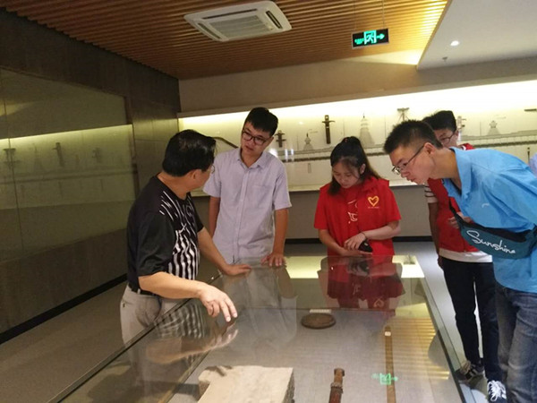 当志愿者们来到新晃博物馆,便受到了馆长黄志清及博物馆讲解员的热情接待。在馆长及讲解员的带领下,志愿者们走进博物馆,参观侗族人文风情。只见馆内藏品琳琅满目,稀有古老的大熊猫牙齿化石、野猪牙齿化石,样式各异的新晃烟卷盒,独具特色的贡矿……让人眼前一亮。