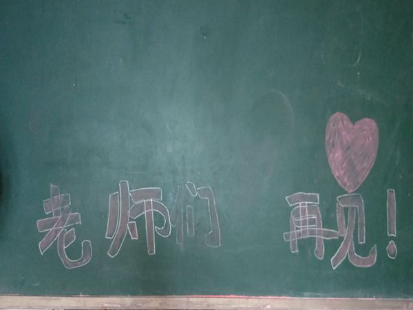 7月21日,是志愿支教行的最后一日。攸县的晨间,公司里的生活一如往常。只是当志愿者走进教室,蓦然发现,两张旧木桌撑着的黑板上多出了一道别样的“风景”:一行稚嫩鲜艳的红色粉笔的大字挂在黑板中央最醒目的位置,“老师们,再见!”这是孩子们早早在黑板前一笔一划地为志愿者们写下的临别话语,话语最后,是一颗通红热烈的爱心,字里行间透着孩子们对志愿者们的满满的爱与不舍。