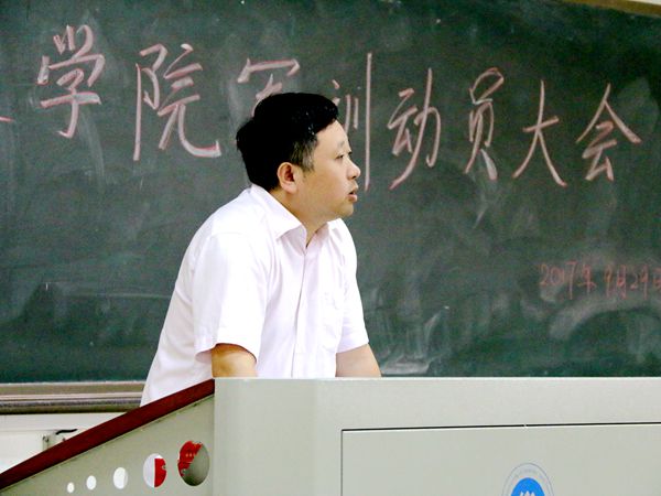 此后,党委副书记邓辉宣布了军训时间安排及军训具体组织和管理工作,强调了军训前的思想教育工作、军训效果、军训安全等问题。 他首先就10月2日开始的军训一系列日程、场地及其他安排作出说明,其中包括教官新生见面会、体检工作、军容风纪检查、队列会操检查及总结大会等。邓书记对军训新生提出三点要求:首先,他希望新生树立对军训的高度思想重视,要求各班级举行班会明确军训任务 ;其次,军训应具有相应效果,希望军训培养新生严于律己的品质并见利于之后的学习生活;最后,邓书记着重强调了安全问题,员工干部在军训期间既要把工作做好,也要保证军训过程中的安全,采取适当的工作方法。