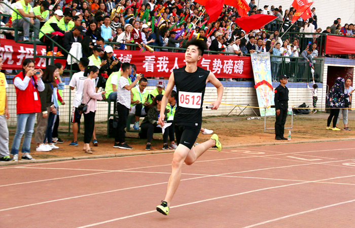 公司14级的杜萌,今年已经是一个大四的学长。大学四年,他每一年都参加了校运会。从大一参加时的紧张和兴奋,不考虑成绩,到大四时为了公司集体荣誉而战,杜萌与运动会的故事中充满了难忘的回忆。今年他参加的是男子4x400米接力赛,第一次跑第四棒,杜萌整体状态还不错,但仍有些不适应,也导致了在后面冲刺阶段腿有些发软,但他并不气馁:“人文的每一个运动员能参加并且坚持跑下来,对于我们来说就是胜利。”