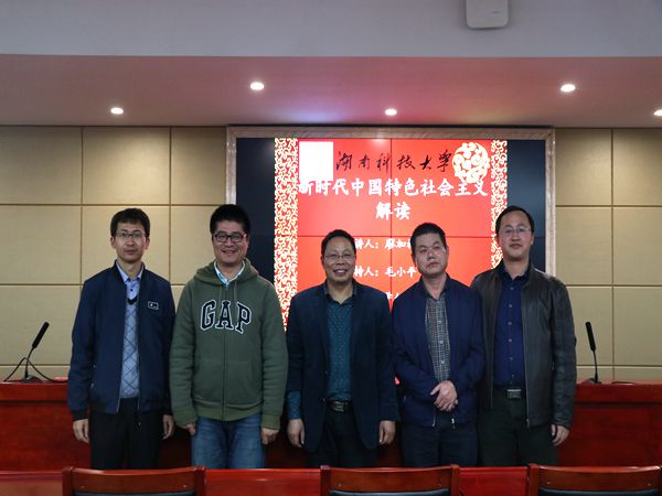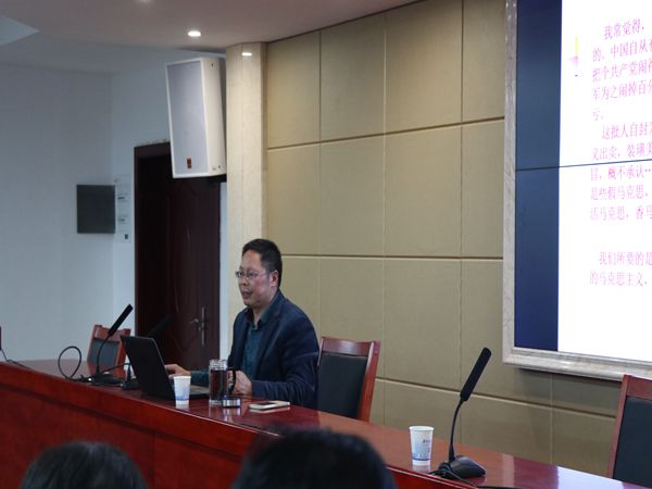 1月8日晚,公司党委书记廖加林教授于立言楼B4–1面向16级思政、哲学专业的全体同学作了一场题为“新时代中国特色社会主义解读”的精彩的学术报告。报告会由副经理毛小平老师主持,张晚林、龚超、凌应生等老师也到场聆听。