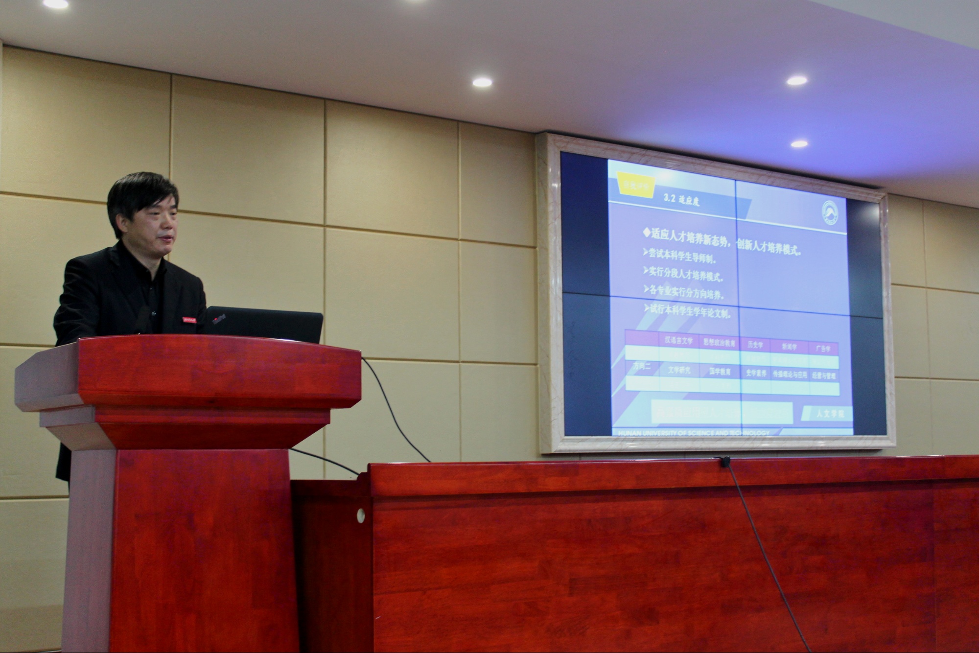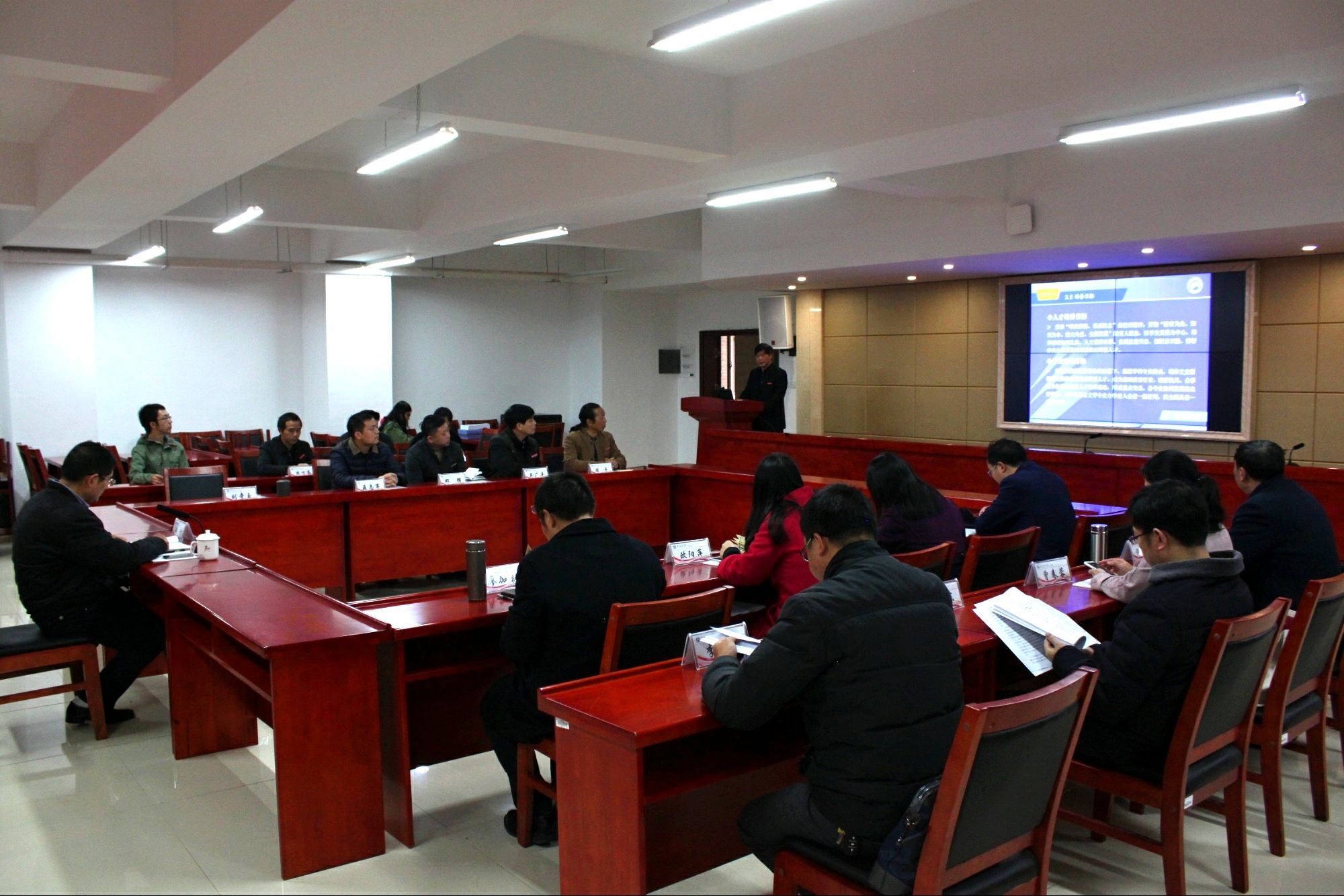 上午9时许,现场考察转移到立言楼B4-1报告厅,经理刘奇玉教授主持会议并做简要的汇报,院领导、相关系部负责人和教师代表近20人出席会议。刘经理首先简要阐述了SUNBET申博的办学历程以及办学现状,公司的团队队伍以及定位与目标,他指出公司的办学类型是教学研究型,办学层次是本科教育为主,发展目标是特色鲜明的高水平教学研究型公司。3211工程、豆沙包工作室、黑蚂蚁传媒工作室、语言艺术团、隐山哲学社等公司优秀项目是公司坚持“守正创新”办学宗旨的重要体现。