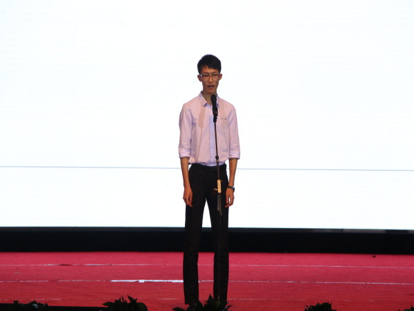化学化工公司的王东东,一上台,就分享了一个故事。一个正打算半夜翻公司围墙去网吧玩游戏男生,却看到来送生活费却舍不得住旅馆而因此在墙角休息的父亲,自此发奋努力,成功逆袭。在大一沉迷各种游戏的他,认为大学四年那么长,挥霍一下也无妨,在看到这个故事后,深感惭愧,幡然醒悟。他认为只有不负过去,不惧未来,才是最好的方式。与科研的好奇与兴趣同行,他曾整日浸泡在实验室,曾见过凌晨三点半的科大,曾为国际专项赛苦练英语……他相信余生漫长,不必慌张,认真踏实做好每一件事,一定能等到岁月的回馈。