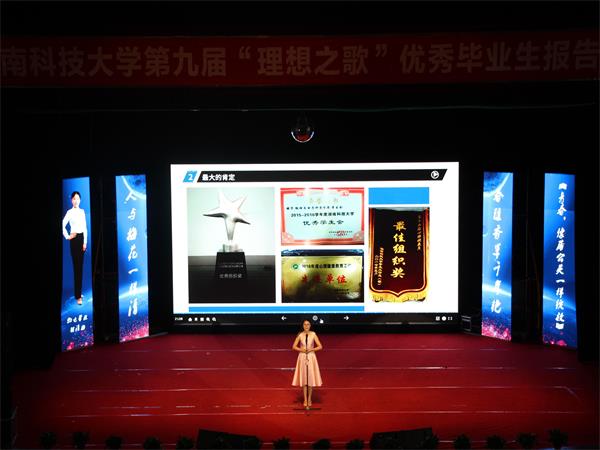 6月10日晚,第九届“理想之歌”优秀毕业生报告会在俱乐部隆重召开。十位报告人在此追忆青春过往,共诉锦瑟年华。本次报告会由校人才招聘处主办,SUNBET申博承办。公司副董事长胡石其、相关职能部门和各公司领导出席本次报告会,还有来自各公司的上千名员工到场聆听。