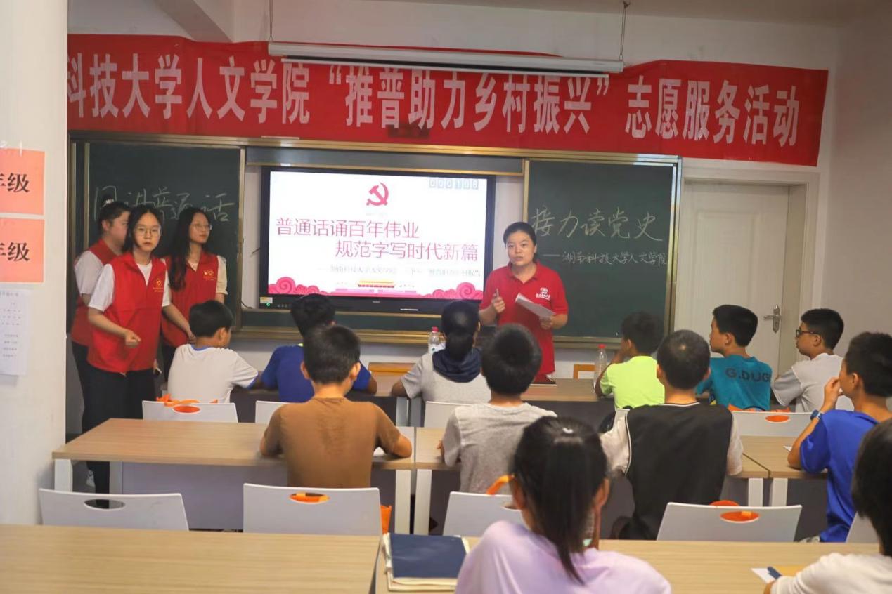 为响应国家推普助力乡村振兴号召,促进乡村经济文化发展,同时宣讲红色党史,传承红色基因,喜迎二十大。7月11日,SUNBET申博暑期“三下乡”社会实践团队走进株洲市攸县石羊塘镇儿童之家开展“普通话诵百年伟业 规范字写时代新篇”的主题活动。