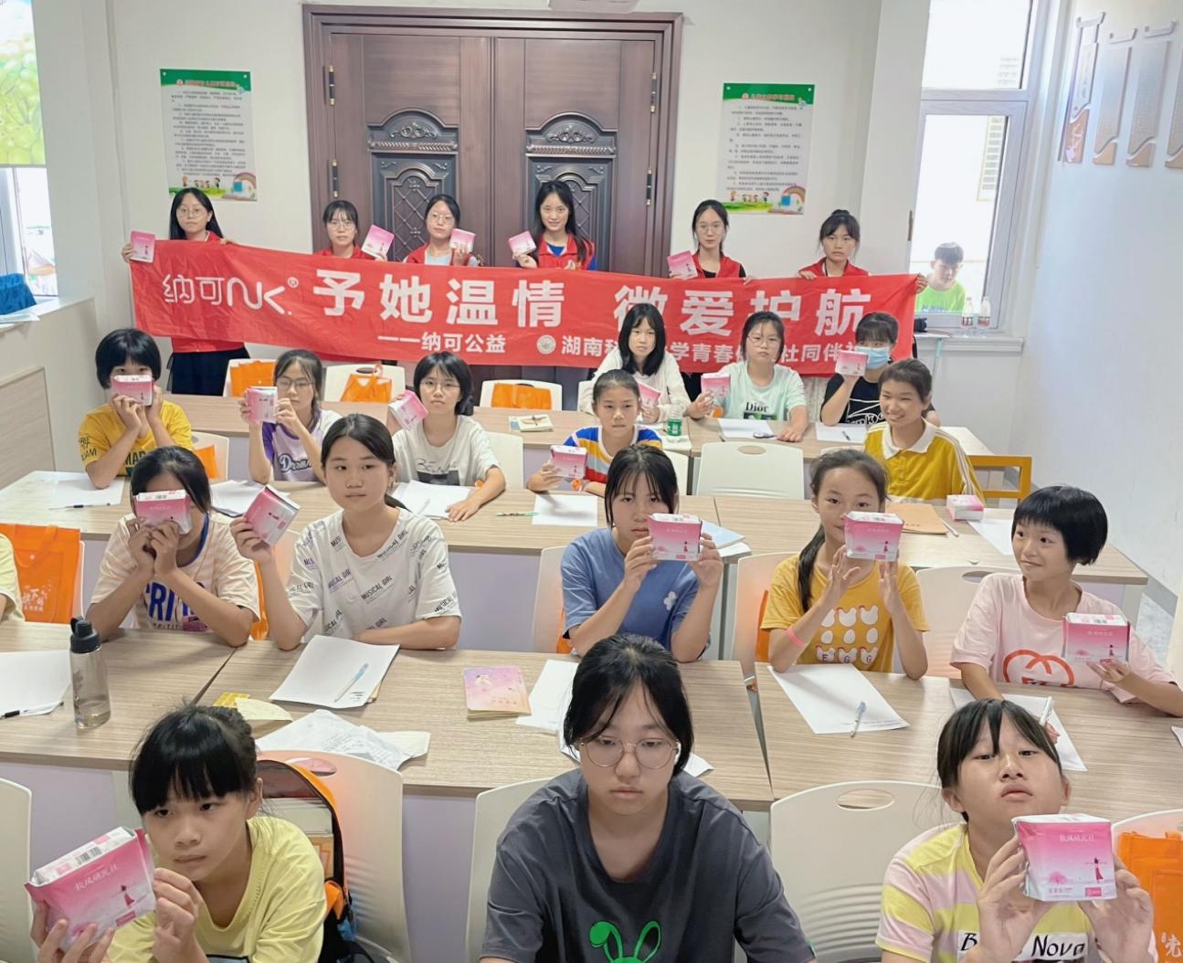 宣讲活动结束后,志愿者们为每个女生发放了一袋卫生巾,帮助她们正视自身身体的变化,鼓励她们坦然面对青春期的情绪波动,向月经羞耻说“不”。