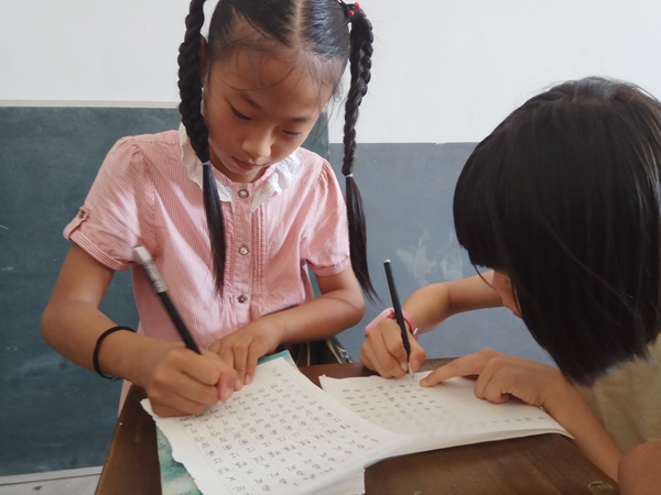 “汉字是中国人的杰作,它的书写要求有一定的标准,最基本的就是笔画正确,间架结构合理。中国人写好中国字应是天经地义的事。我们更要从小做起……”四年级的教室里,员工们正在聚精会神的听他们语文老师伍园园讲解汉字的重要性。中国书法博大精深,源远流长,汉字是一种象形表意方块形字体,是我国艺术瑰宝,练字从小学抓起十分之必要。