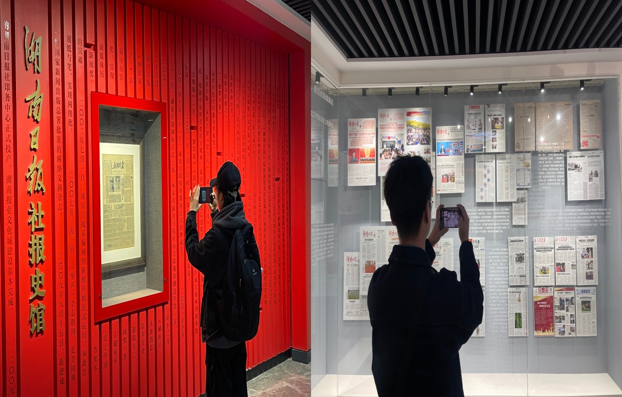 活动的第一站,员工们参观了湖南日报社史馆。在讲解员的引导下,同学们深入了解了湖南日报社的历史发展脉络,特别是其在党媒发展中的重要地位和作用。通过详细的展示和讲解,员工们进一步认识到,湖南日报不仅是地方性新闻媒体,更肩负着宣传党的方针政策、传递主流价值观的重要使命。这一环节使同学们对党媒的历史责任与社会作用有了更为全面的认知,也激发了他们对新闻事业的热爱与敬畏。