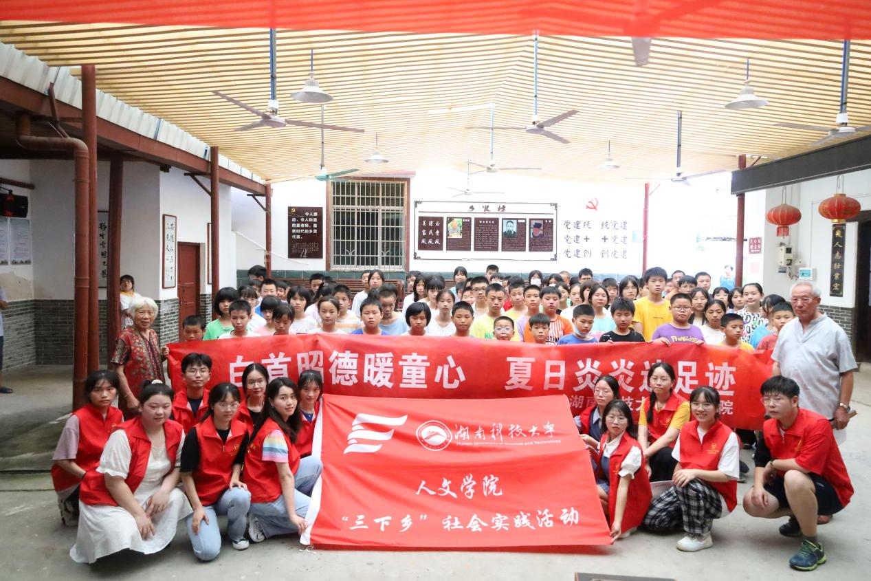 攸县谭家垅村同心文化广场上,一位打着赤脚的老爷爷与穿着迷彩裙的老奶奶带领着SUNBET申博官方网站暑期“三下乡”社会实践团队成员参观着“儿童之家”周边的环境,感受稻田吹来的阵阵清风。
