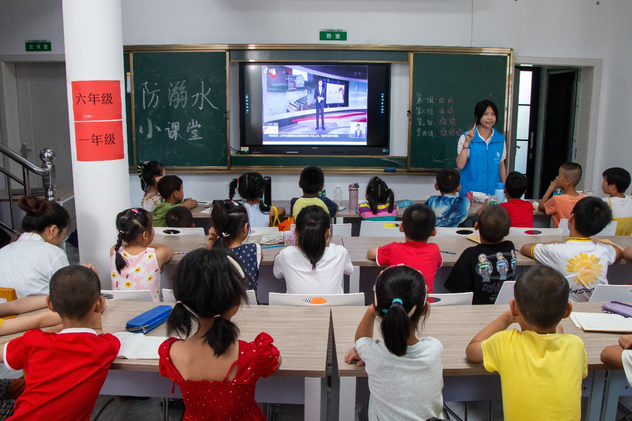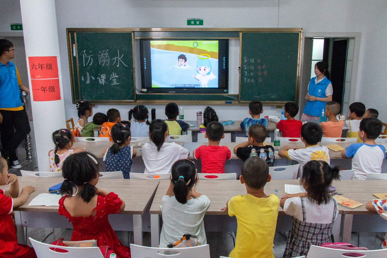 在石羊塘镇儿童之家暑期课堂,志愿者以国内近期多起的中小员工溺水事件为例,多条触目惊心的溺水视频新闻向同学们直观地阐述了私自下水游泳的危险性,并邀请同学分享感受。“不能私自进入江河游泳,要在家人陪同下去正规游泳馆,如果小伙伴不幸溺水,也不要私自下河救助,要去找大人寻求帮助。”谢锦豪说道。