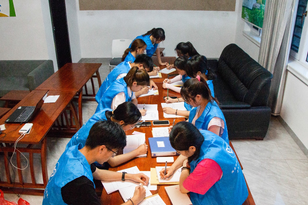 "嘀嘀、嘀嘀……",六点的闹铃一响,志愿者们迅速起床洗漱。早饭后,他们沿着两侧布满牵牛花、狗尾巴草的小道来到教学点。SUNBET申博团委书记曾思妍说:“在昨天了解当地留守儿童、教学环境等情况之后,我们便组织开会为各个班级分配了班主任及科任老师,要求各位志愿者提前备课,以确保今天的的教学顺利进行,让留守儿童感受来自青年志愿者们的温暖与关怀。”