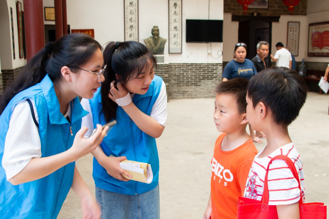 一年级数学课堂上,志愿者郑添卉笑着问道:“大家觉得数学好玩吗?”“好玩!”台下的同学们异口同声道。“没关系,满怀教学热情的老师会带大家慢慢走进数学奇妙世界,让大家发现其中有趣的东西。”二年级的语文课上,志愿者吕飞叶让同学们在黑板写名字,以此认识每个员工,并且纠正他们的笔顺错误,规范其书写顺序。三年级的美术课,琳琅满目的书法书法美术作品吸引住台下一寸寸的目光,志愿者龙子尧为同学们介绍国画、水墨画、壁画、刺绣、雕塑等,引起他们的热烈讨论。