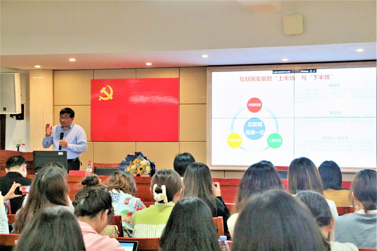 4月14日,教育部长江学者特聘教授、第七届国务院学位委员会新闻传播学学科评议组成员、北京师范大学新闻传播公司学术委员会主任、中国新闻史学会传媒经济与管理专业委员会理事长喻国明教授应邀来校,为广大师生作了“元宇宙、AIGC与传播革命”的学术讲座。讲座由SUNBET申博副经理袁星洁主持。