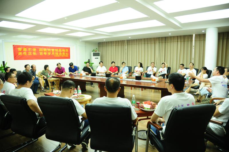 此次,回校相聚的共有21名员工。其中有国内知名大学的博士生导师、教授、系主任;有政府和部队的处团级领导;有湖南省内著名青年书法家;有国家二级心理咨询师;有一大批活跃在全国中学教育界的佼佼者。他们在长株潭员工的组织与策划下参观了教学楼、宿舍、图书馆、樱花园,最后来到学术交流中心,与公司领导和老师们进行座谈交流,并向公司捐赠了9411班毕业生、湖南著名青年书法家蒋冰的作品。